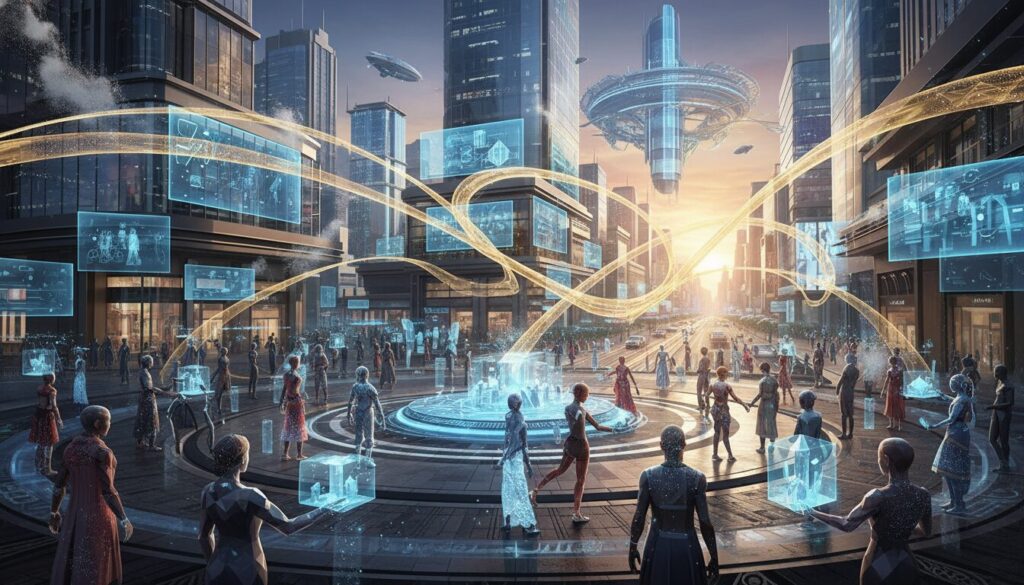 これらの課題を抱えつつも、メタバースの基盤技術は指数関数的な進化を遂げています。2026年から2030年に向けて、TechShiftでは以下の3つの重要な予測シナリオを描いています。