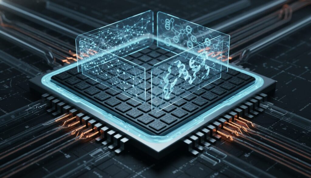 ニューラルネットワークの学習プロセスは膨大な「行列積算」の連続であり、GPUのアーキテクチャと完璧に合致します。前述の通り、巨大テック企業の競争力は「いかに強靭なGPUクラスタを構築できるか」に依存しています。ただし課題として、数万基のGPUを連動させる際のネットワーク遅延(レイテンシ)をいかに極小化するかが問われており、InfiniBandなどの専用ネットワーク機器の設定・最適化が高度な専門領域となっています。 - マテリアルズインフォマティクスと創薬(AlphaFoldなど)
